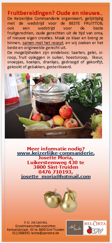 De Keizerlijke Commanderie grijpt ook graag terug naar het culinaire verleden.  Tal van oude bereidingen op basis van fruit dreigen verloren te gaan en wij zouden ze graag verzamelen.